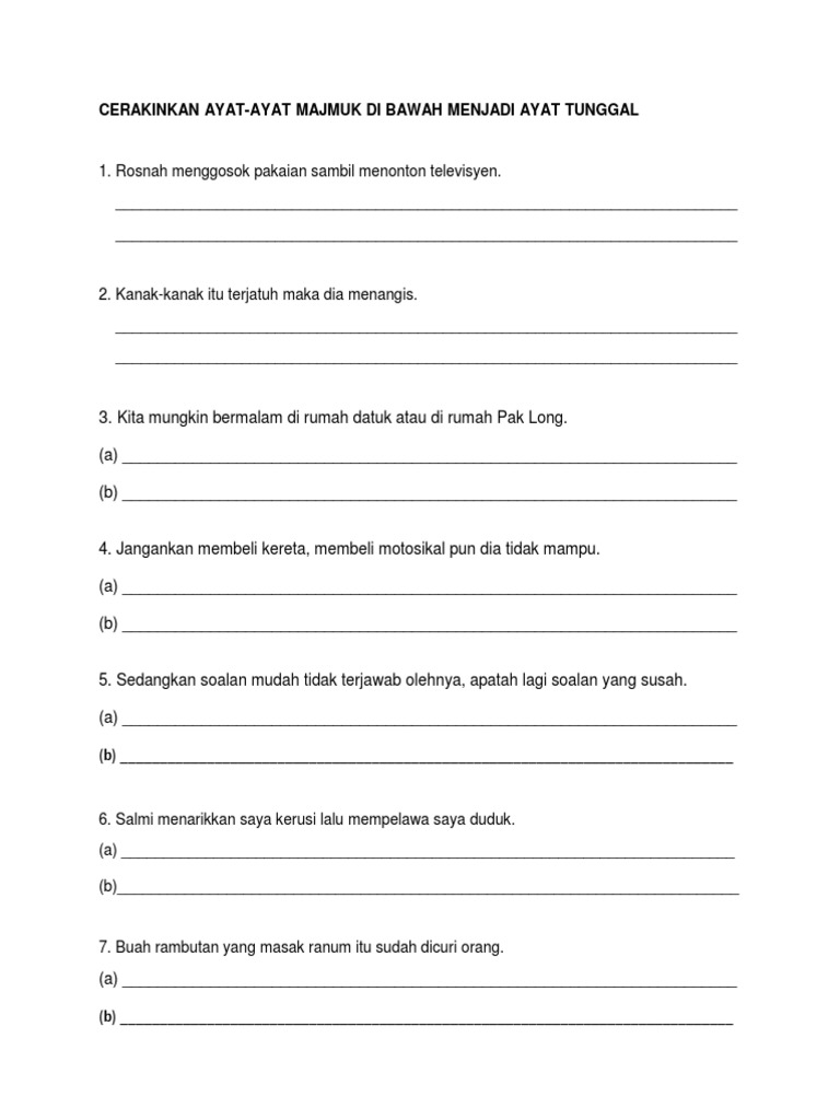 Cerakinkan Ayat Majmuk Di Bawah Menjadi Ayat Tunggal Pdf